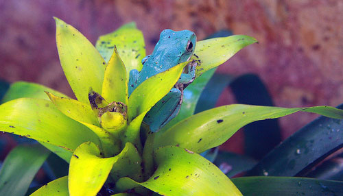 Tropische Bromelien (z.B. die Ananas) sammeln in ihren zu Gefäßen zusammengewachsenen Blättern Wasser. In diesen Biotopen leben z.B. Frösche, die Insekten fangen und diese in für die Pflanze nahrhafte Fäkalien verwandeln.