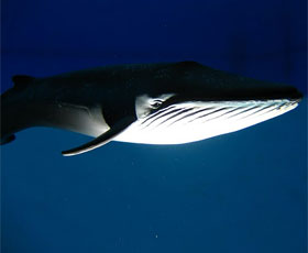 Der Beluga oder Weißwal ist in fast allen polaren und subpolaren Meeren der Nordhalbkugel anzutreffen, wo er sich besonders gerne im Treibeisbereich aufhält. Der Körper wirkt massig und der Kopf ist relativ kurz und trägt eine vorgewölbte Verdickung (Melone), die das Walrat (ein besonderes Öl weshalb sie früher gejagt wurden)enthält.Diese Melone bildet sich im Laufe des Lebens aus. Der Beluga gehört zu den Zahnwalen und ernährt sich von Quallen, Tintenfischen, Muscheln, Würmern und Fischen.Belugas schwimmwn manchmal in Flüsse hinein und müssen dann zurück ins Meer geführt werden. |